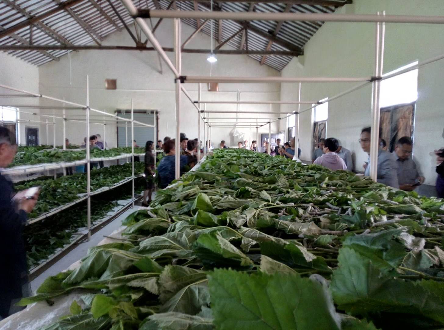 隨后與會代表參觀了《絲綢之路規(guī)模化、集約化蠶桑示范基地》。該基地實(shí)施單位:絲綢之路控股集團(tuán)湖州農(nóng)業(yè)科技有限公司;建設(shè)地點(diǎn):湖州市南潯區(qū)菱湖鎮(zhèn)楊家巷村、射中村、千金鎮(zhèn)東馬干村;基地規(guī)模:510畝;項(xiàng)目投資:1200萬元;實(shí)施內(nèi)容:雜交桑草本化栽培及機(jī)械化收獲技術(shù),小蠶工廠化、規(guī)?;灿夹g(shù),大蠶省力化規(guī)?;曫B(yǎng)技術(shù),優(yōu)質(zhì)雄蠶繭新品種飼養(yǎng)與上簇管理技術(shù)。代表們對該基地的工廠化機(jī)械化養(yǎng)蠶表現(xiàn)出極大的興趣。對工業(yè)資本進(jìn)入傳統(tǒng)蠶桑業(yè)表示敬佩。