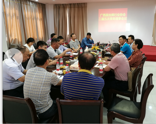 2018年5月16日,廣西繭絲綢行業(yè)協(xié)會在南寧召開常務(wù)理事會議,23位常務(wù)理事參加會議,廣西自治區(qū)繭絲辦梁維佳工程師到會指導(dǎo)。