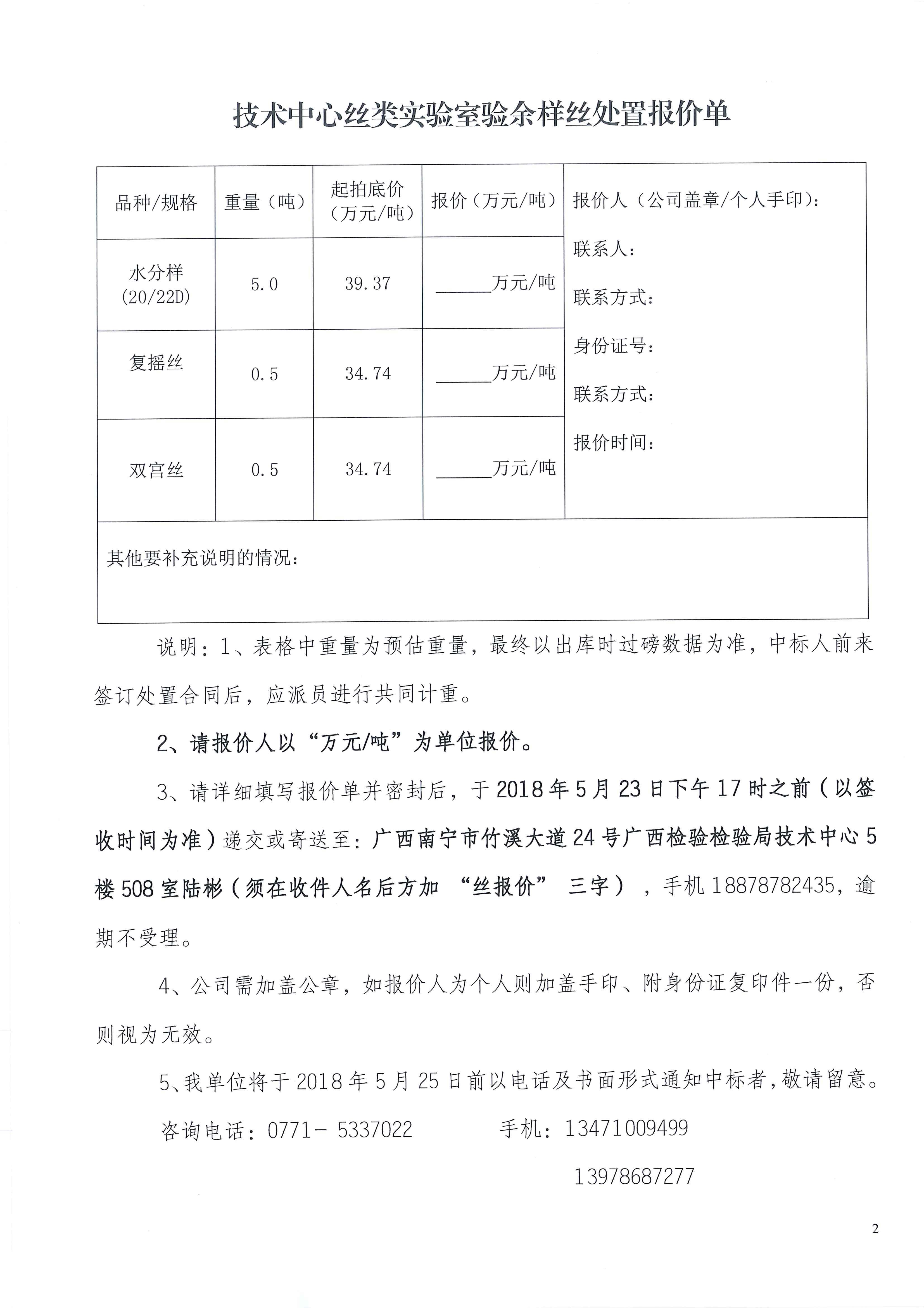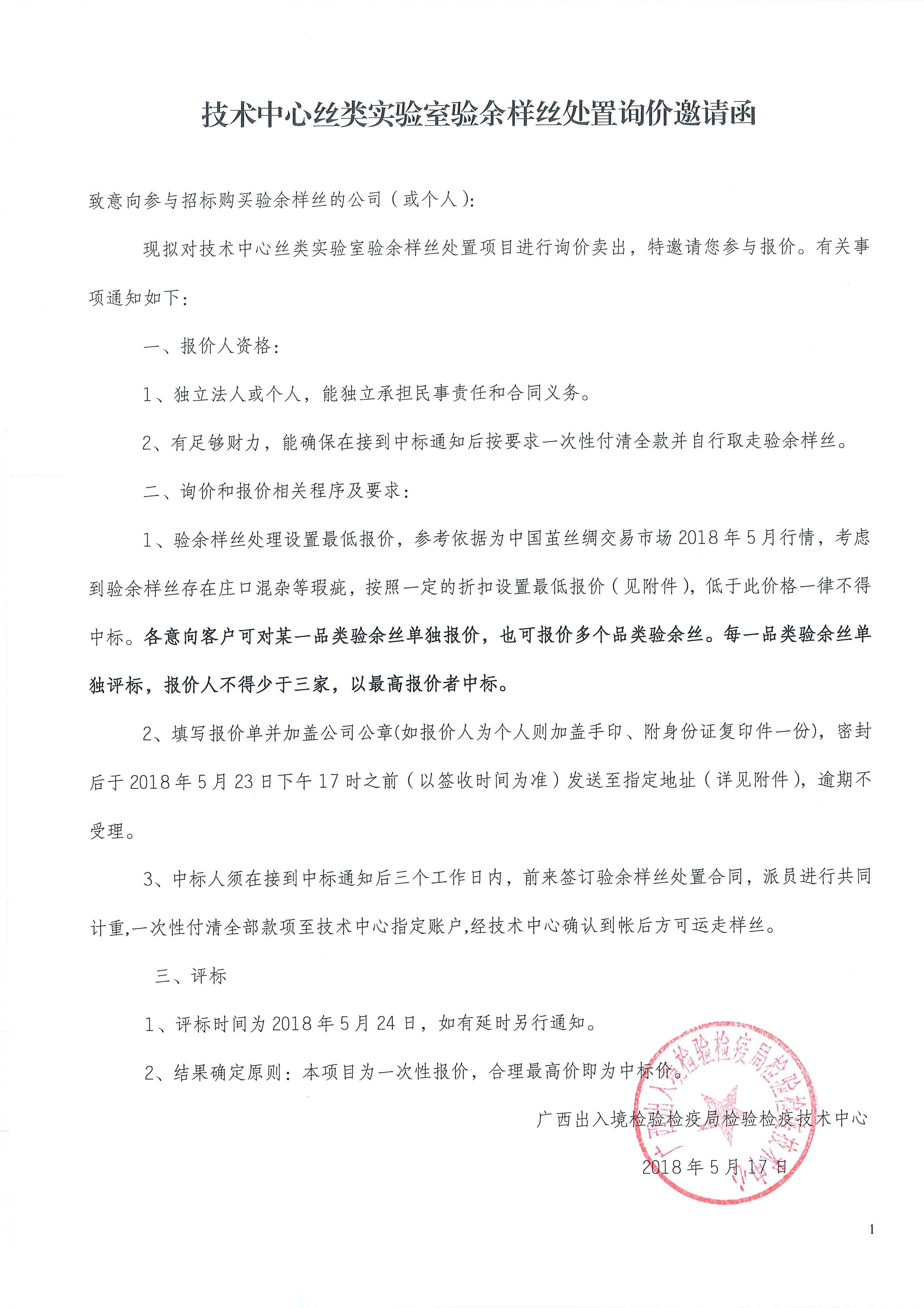 廣西出入境檢驗(yàn)檢疫局檢驗(yàn)檢疫技術(shù)中心驗(yàn)余樣絲詢價(jià)拍賣公告