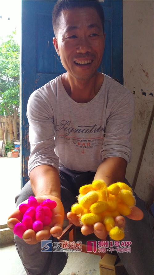印象中,蠶繭都是銀白色的,可是近日,在柳城縣鳳山鎮(zhèn)對(duì)河村塘進(jìn)屯,有位蠶農(nóng)竟然養(yǎng)出了能結(jié)彩色蠶繭的蠶,這讓其他蠶農(nóng)也感到很稀奇。當(dāng)他把彩色的蠶繭拍照放到網(wǎng)上后,有經(jīng)營(yíng)絲綢產(chǎn)品的老板,為了能搶購(gòu)到他的彩色蠶繭,還從北京專門坐飛機(jī)到柳州,直奔他家。