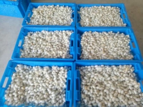 自6月5日以來,陜西春繭陸續(xù)全面上市。據(jù)來自我省蠶繭主要產(chǎn)區(qū)的安康、商洛,漢中等地的消息,受今年霜凍和倒春寒的影響,我省春繭上市比往年晚一周左右,部分產(chǎn)區(qū)新栽桑樹長勢(shì)受到困擾,當(dāng)?shù)匦Q技部門適時(shí)指導(dǎo)蠶農(nóng)對(duì)桑樹降桿、剪梢、追肥、防蟲等,想方設(shè)法恢復(fù)樹勢(shì),提高產(chǎn)葉量。目前各地已進(jìn)入收烘旺季,隨著規(guī)模化、工廠化、專業(yè)化養(yǎng)蠶的推廣以及方格簇的普遍使用,我省今年春繭的各項(xiàng)指標(biāo)都有一定的提升,來自安康石泉縣、漢濱區(qū),漢中勉縣,商洛鎮(zhèn)安等地的消息,今年張產(chǎn)平均都在90--95斤,春繭個(gè)大勻稱,繭層率普遍達(dá)到23%,好蛹率增加,毛腳繭減少,鮮繭價(jià)格普遍在每市斤25-27元,蠶繭質(zhì)量普遍好于去年同期。預(yù)計(jì)今年產(chǎn)繭量將比去年同期增加5-10%。目前全國各地繭價(jià)波動(dòng)較大,后市仍存在許多不確定因素,各蠶繭收購部門仍應(yīng)密切關(guān)注。