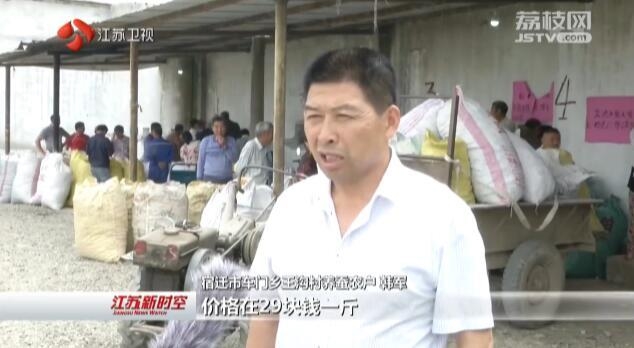 在宿遷泗洪車門鄉(xiāng)的收購現(xiàn)場,一袋袋一筐筐潔白的蠶繭格外顯眼,正在排隊等候收購的群眾也在相互交談,喜悅之情溢于言表。