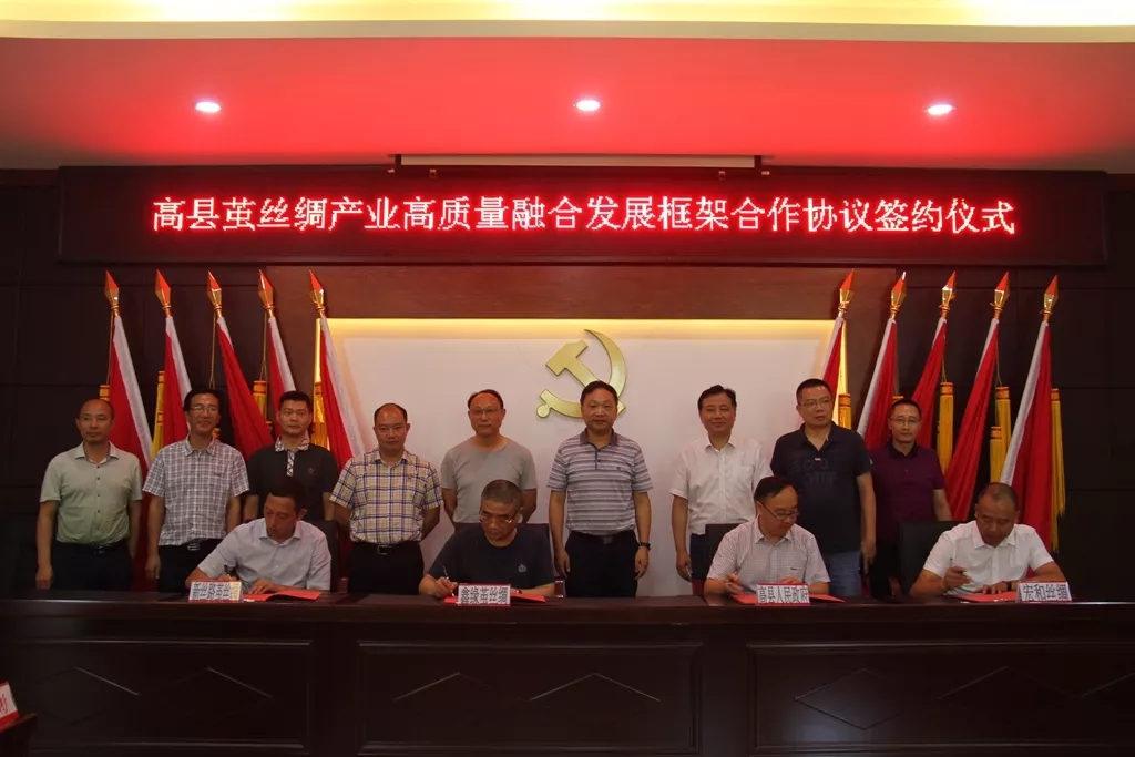 黃修國(guó)介紹了我縣的基本情況,并代表我縣與江蘇海安市鑫緣繭絲綢集團(tuán)股份有限公司、四川宏和絲綢有限公司、四川新絲路繭絲綢公司簽署了框架合作協(xié)議。