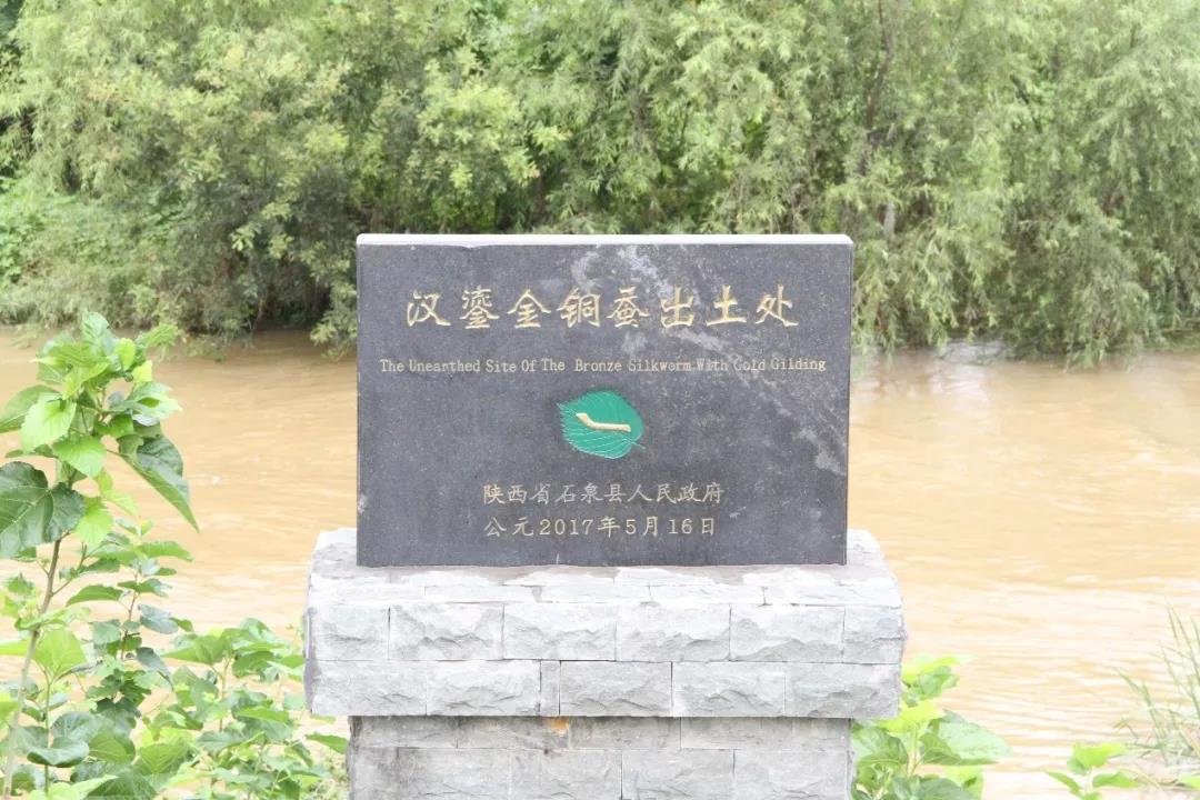 調(diào)研考察組一行在石泉縣縣委常委、常務(wù)副縣長王仁康的陪同下,來到了“鎏金銅蠶”的出土遺址處——石泉縣池河鎮(zhèn)譚家灣村。鎮(zhèn)長牛少定介紹了“鎏金銅蠶”的發(fā)現(xiàn)過程,引領(lǐng)參觀了金蠶公園、“金蠶之鄉(xiāng)博物館”。