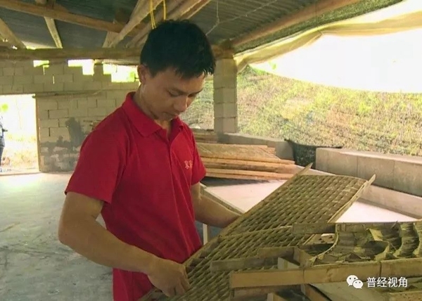 在云南省普洱市瀾滄縣發(fā)展河鄉(xiāng)發(fā)展河村,村民李方元在自家的蠶房中打掃衛(wèi)生,他剛剛把自家今年的第一張蠶售賣出去。李方元給記者算了一筆賬,一季夏蠶養(yǎng)3張,三張蠶飼養(yǎng)一個月就收獲7000多元,一年可以養(yǎng)4季,這樣算下來就蠶繭一項他家一年收入就達到了28000多元。