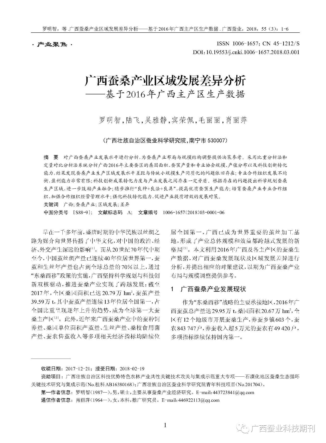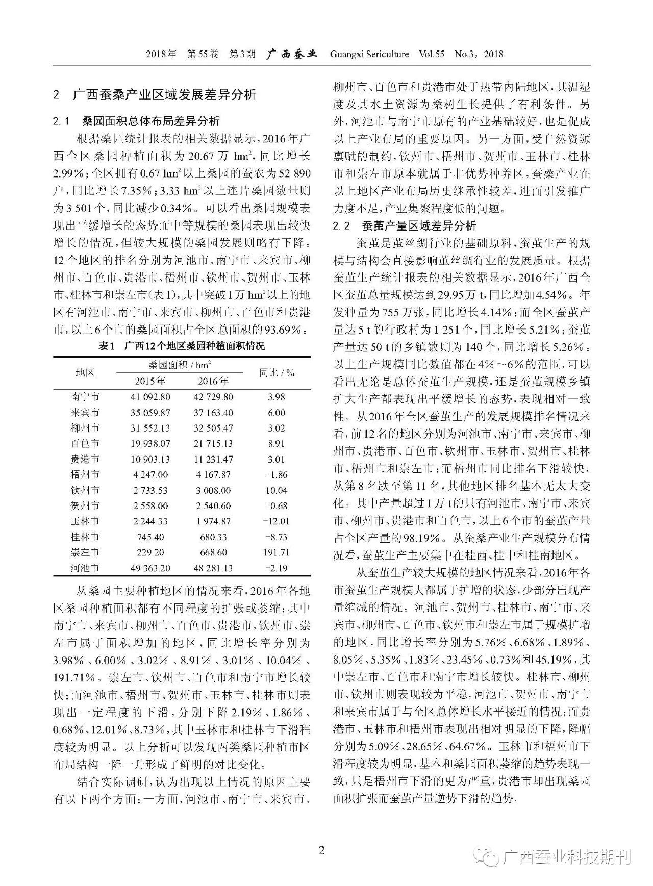 廣西蠶桑產(chǎn)業(yè)區(qū)域發(fā)展差異分析——基于2016 年廣西主產(chǎn)區(qū)生產(chǎn)數(shù)據(jù)