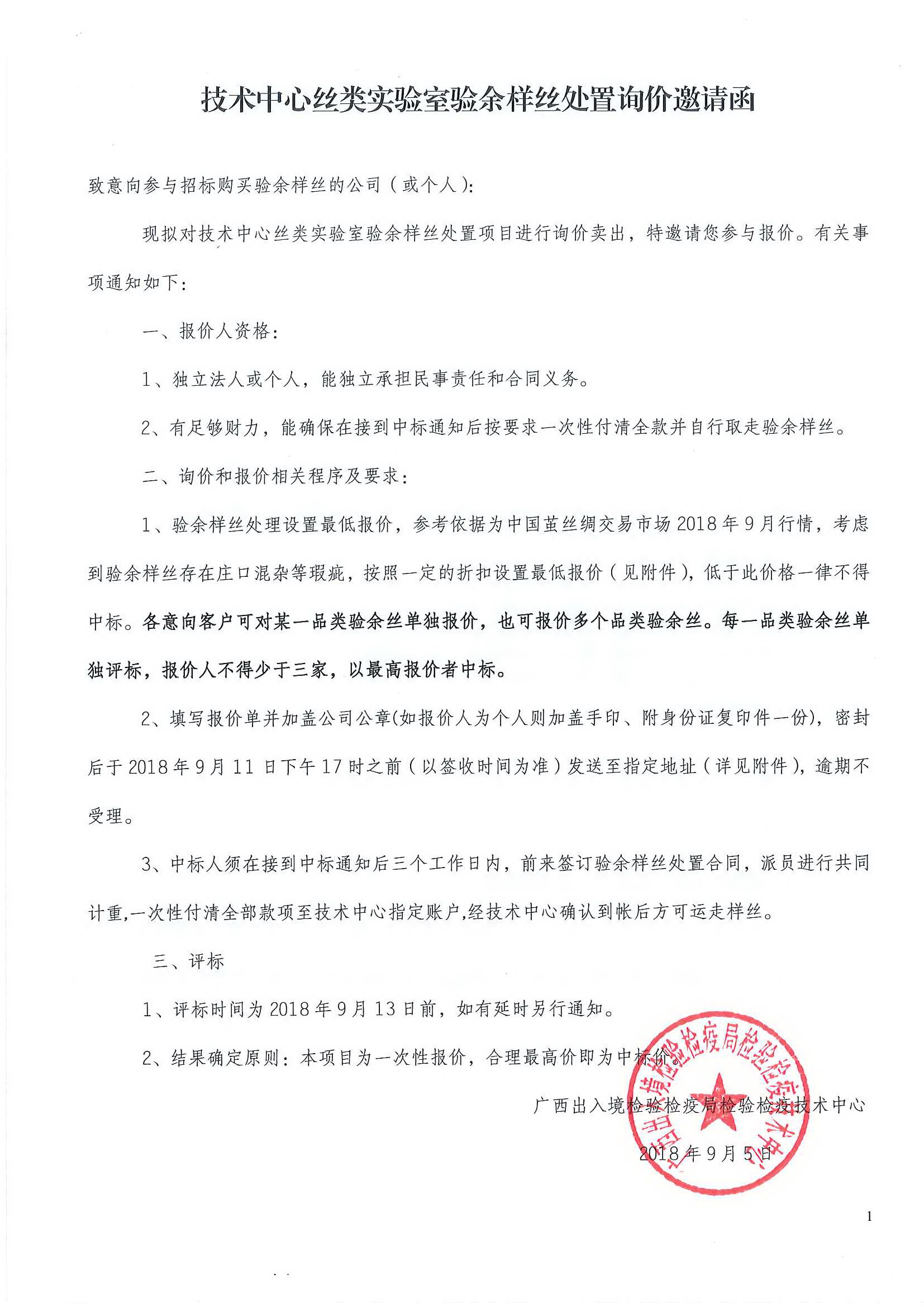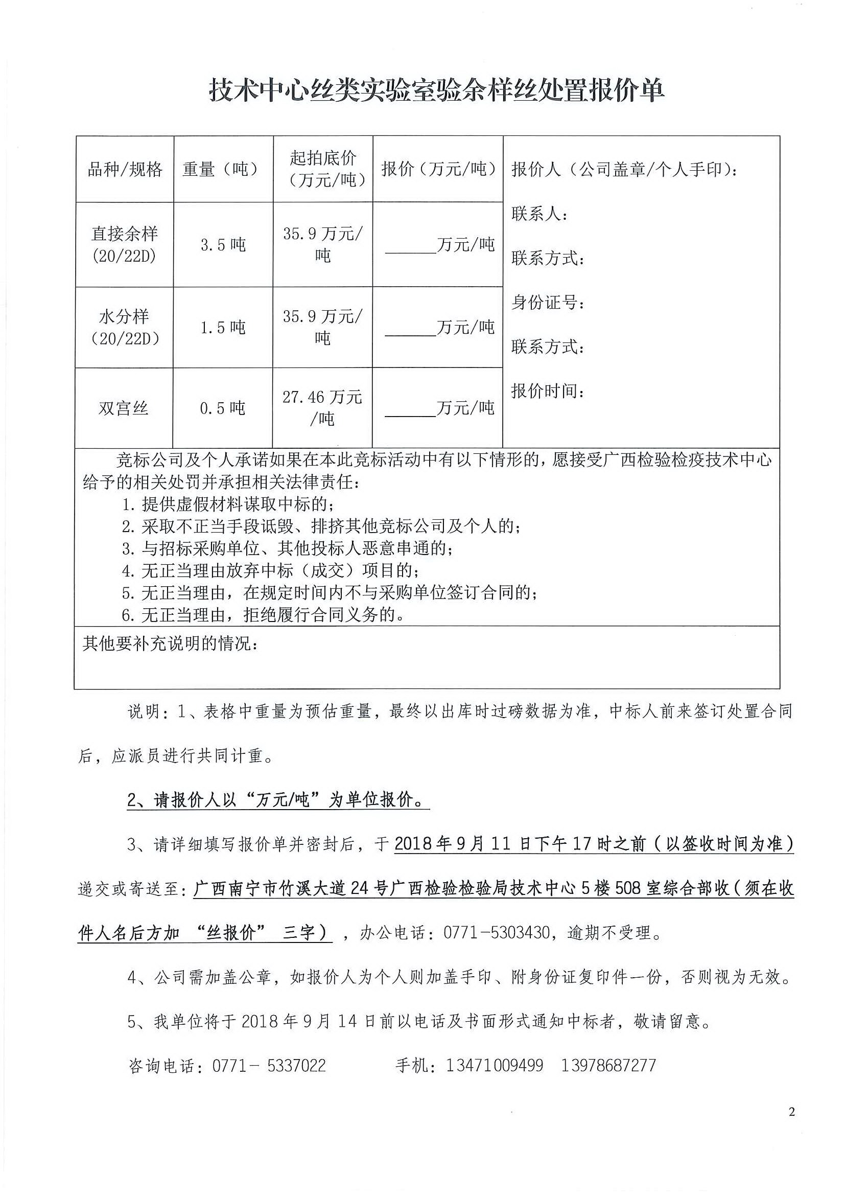 廣西出入境檢驗(yàn)檢疫局檢驗(yàn)檢疫技術(shù)中心驗(yàn)余樣絲處置詢價拍賣公告