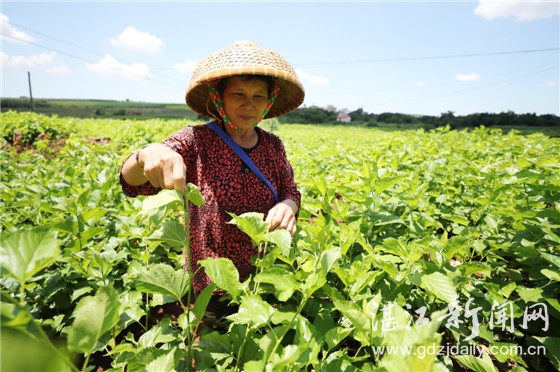信橋村村民在采摘桑葉養(yǎng)蠶。