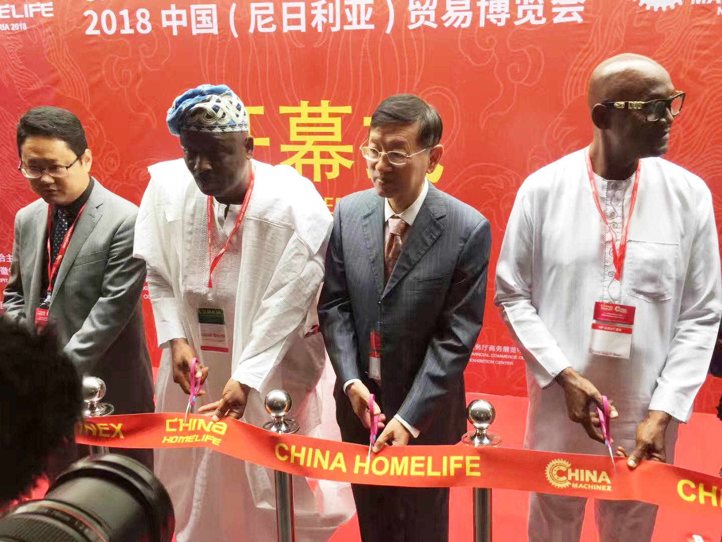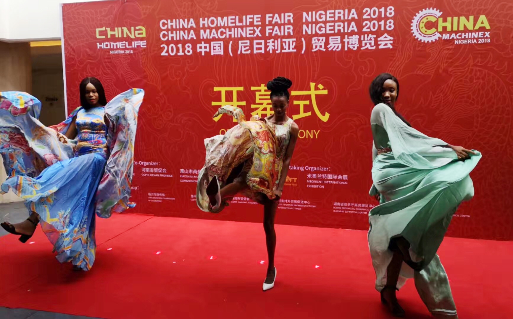 9月5日,中國(尼日利亞)貿(mào)易博覽會在拉各斯開幕。來自浙江、江蘇、河南、江西、廣東的85家廠商參展,我代表國際絲綢聯(lián)盟在開幕式上致辭剪彩。