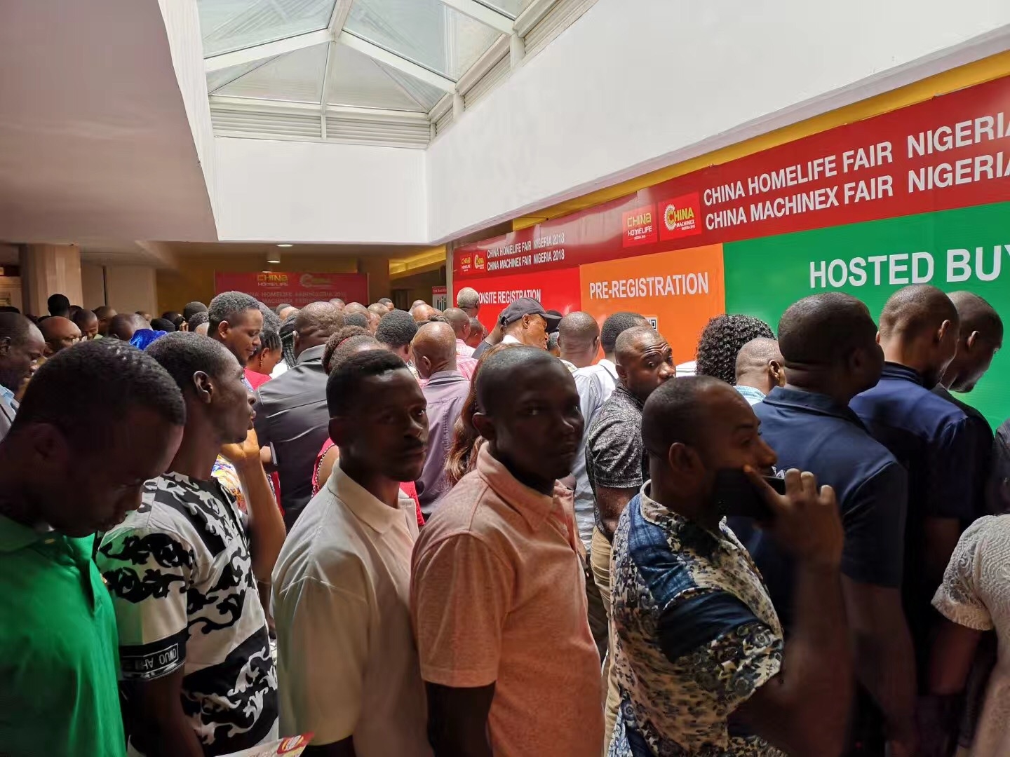 開幕式結(jié)束后,來參觀洽談的客商在展館門口排起了長長的隊伍,等候在電子注冊機上登記入場。令人遺憾的是今年的貿(mào)易博覽會竟沒有一家中國的絲綢企業(yè)參展,也許是因為去年參展的絲綢企業(yè)沒接到定單,殺羽而歸,造成行業(yè)內(nèi)的寒蟬效應(yīng)?或者是今年的展期編排中,尼日利亞的展期前后沒有相聯(lián)接的其他國家的展會,尼日利亞貿(mào)博會成了一個相對孤立的展會,也影響了絲綢企業(yè)的參展積極性?這都應(yīng)該引起展會主辦方米奧蘭特國際會展公司的重視,加以深入細(xì)致的研判。