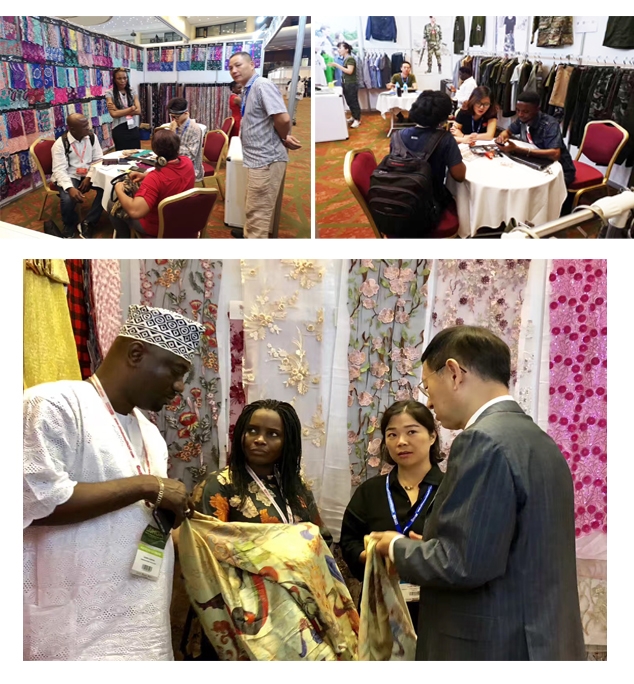 展會期間,我與尼日利亞時尚設(shè)計協(xié)會會長也進行了商談,她表示:尼日利亞現(xiàn)在是窮人很窮,富人很富,高消費群體的市場擺在那里。如果中國絲綢要進入尼日利亞,可以用中國的絲綢面料請尼日利亞的時尚設(shè)計師設(shè)計尼日利亞人喜歡的款式走一場時尚秀,她可以組織有實力的買家來觀摩下單。