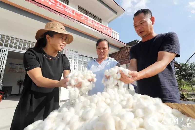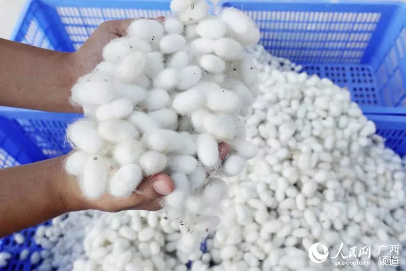 近日,地處桂北山區(qū)的廣西融安縣第一批秋繭正式上市銷售。近年來,融安結(jié)合當(dāng)?shù)貙?shí)際引導(dǎo)貧困群眾發(fā)展種桑養(yǎng)蠶,通過“公司+基地+合作社+貧困戶”經(jīng)營(yíng)模式,公司與貧困村簽訂保價(jià)收購(gòu)合同,派出工作人員直接收購(gòu)蠶繭,確保農(nóng)民有穩(wěn)定收入,促進(jìn)群眾增收脫貧。目前,鮮繭收購(gòu)價(jià)格在45元每公斤,融安縣12個(gè)鄉(xiāng)鎮(zhèn)均有桑蠶生產(chǎn),桑園面積達(dá)3萬多畝,年養(yǎng)蠶6萬余張,養(yǎng)蠶收入9000余萬元,成為貧困群眾脫貧的一個(gè)重要途徑。