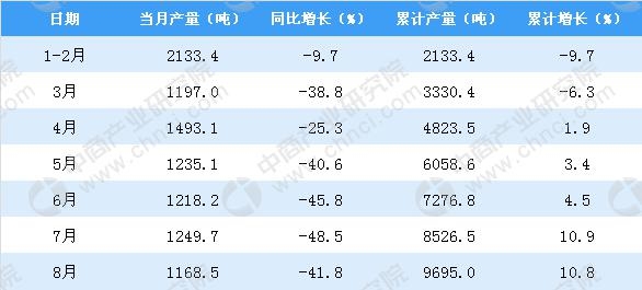 據(jù)中商產(chǎn)業(yè)研究院數(shù)據(jù)庫(kù)顯示,2018年4-6月江蘇省蠶絲產(chǎn)量逐漸下降,2018年6月江蘇省蠶絲產(chǎn)量為1218.2噸,同比下降45.8%。2018年7月江蘇省蠶絲產(chǎn)量有小幅度回升,2018年8月江蘇省蠶絲產(chǎn)量再次下降;2018年8月江蘇省蠶絲產(chǎn)量為1168.5噸,同比下降41.8%。2018年1-8月江蘇省蠶絲產(chǎn)量為9695噸,同比增長(zhǎng)10.8%。