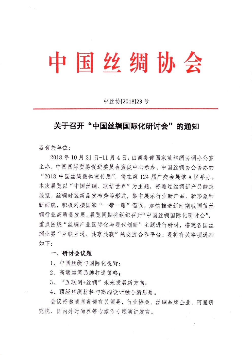 敬請關(guān)注:中國絲綢協(xié)會關(guān)于召開”中國絲綢國際化研討會“的通知