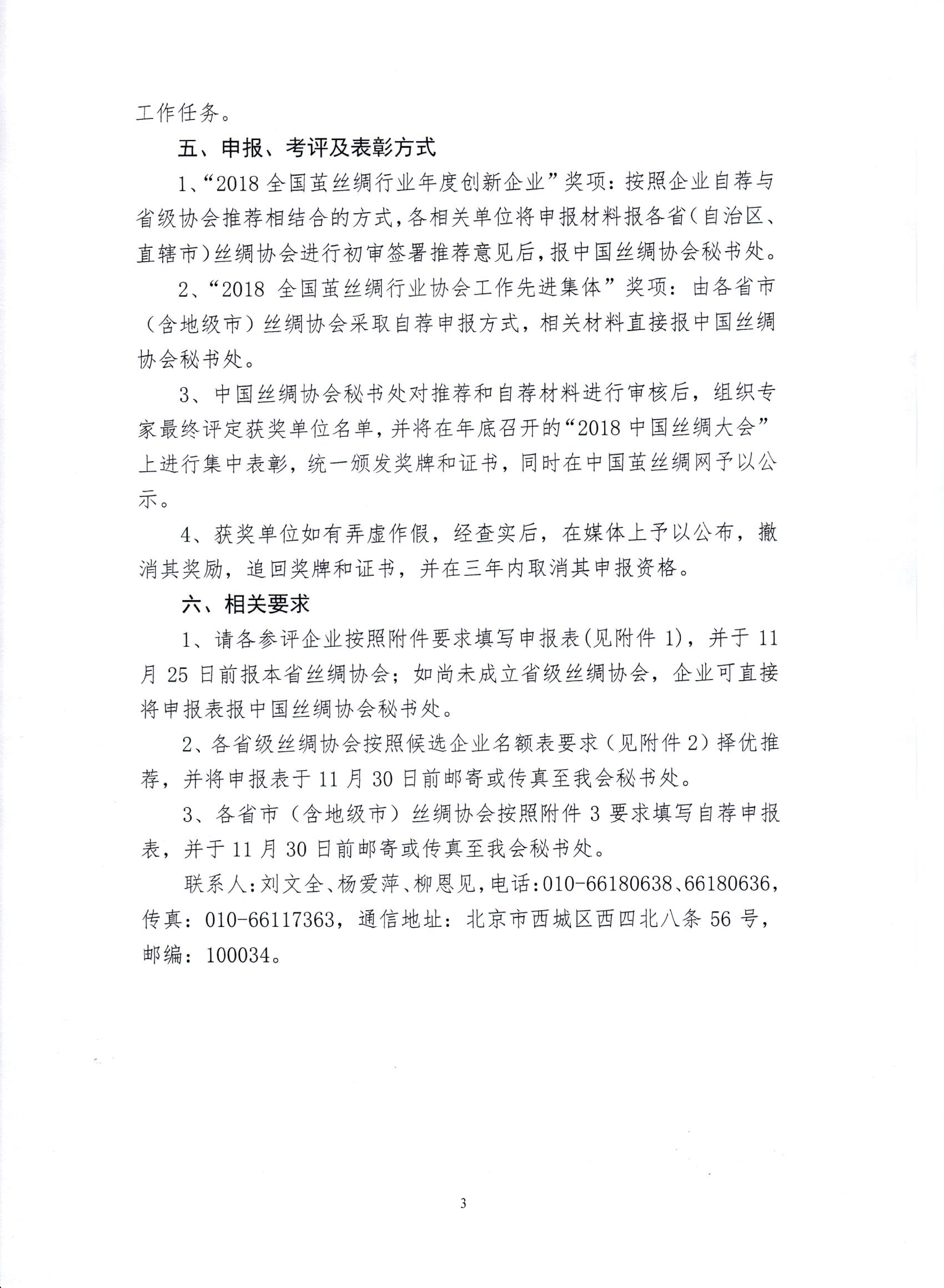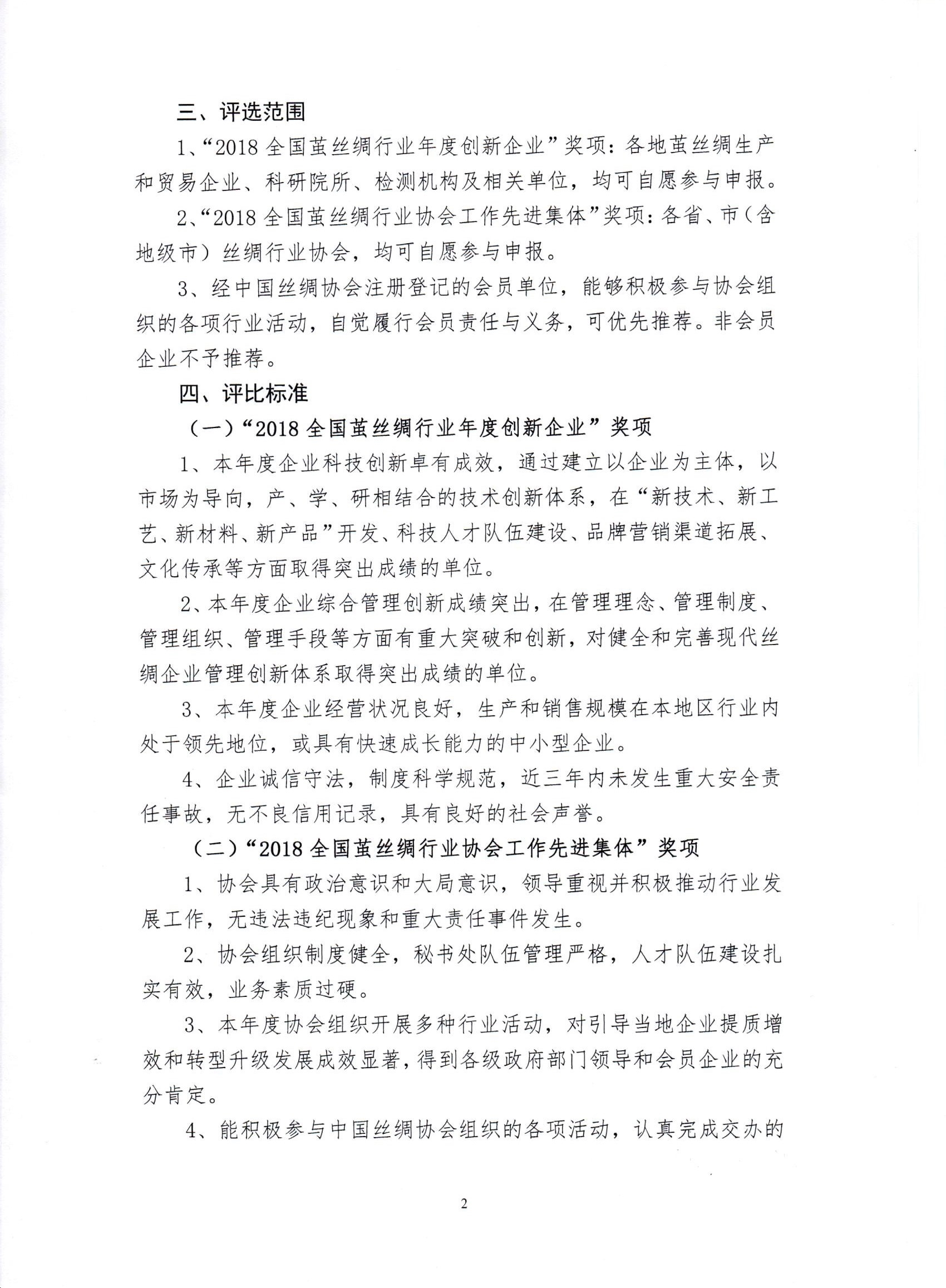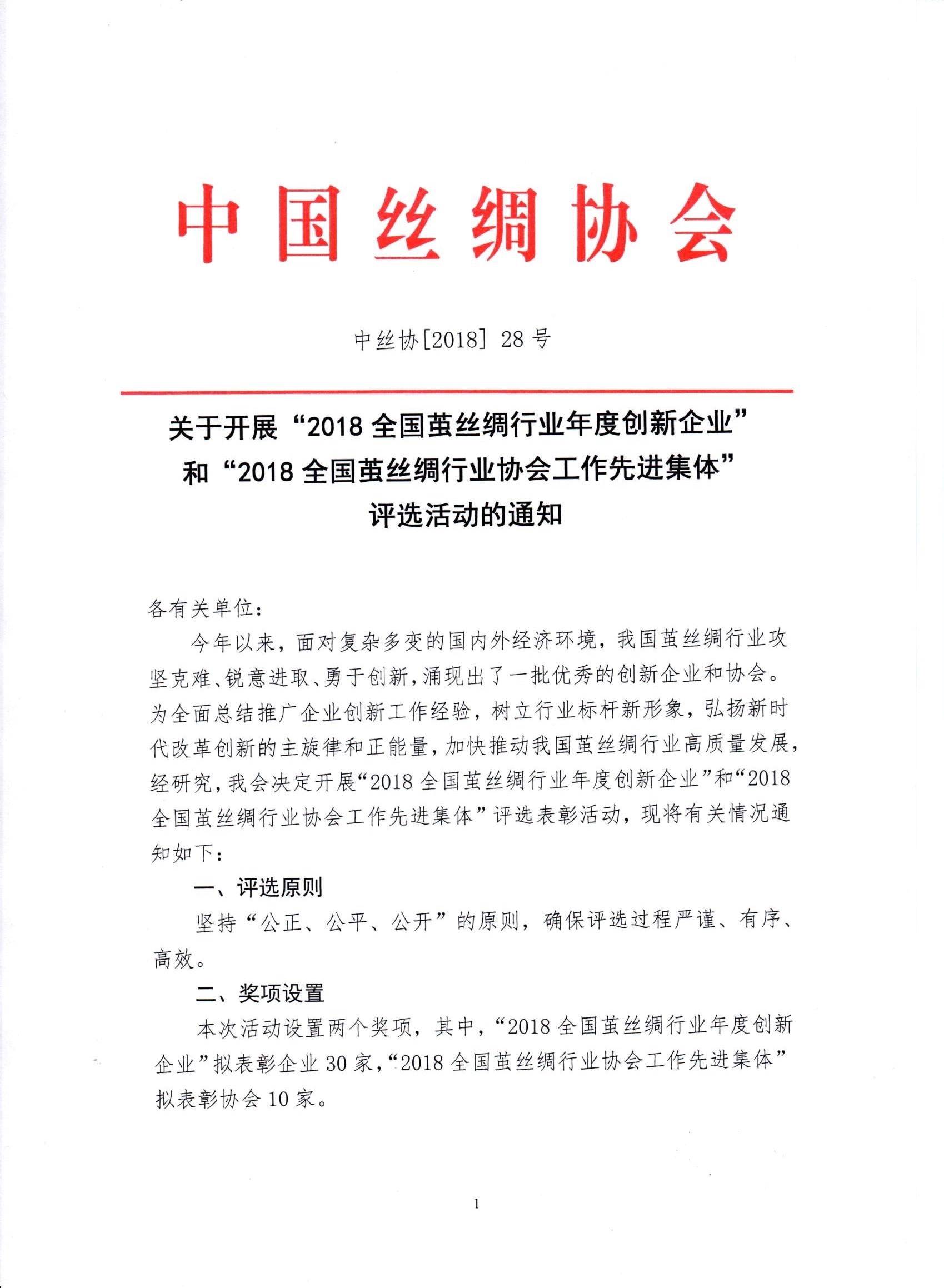 敬請(qǐng)關(guān)注:中國(guó)絲綢協(xié)會(huì)關(guān)于開展“2018全國(guó)繭絲綢行業(yè)年度創(chuàng)新企業(yè)”和“2018全國(guó)繭絲綢行業(yè)協(xié)會(huì)工作先進(jìn)集體”評(píng)選活動(dòng)的通知