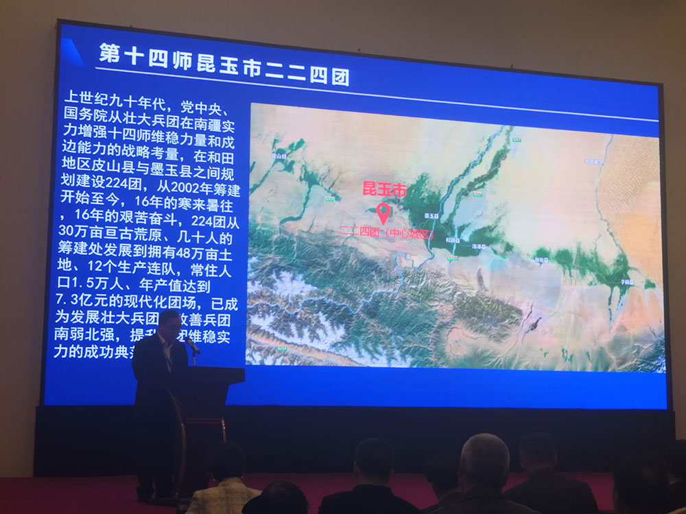 新疆兵團第十四師昆玉市黨委書記、政委楊秀理介紹當(dāng)?shù)厍闆r。