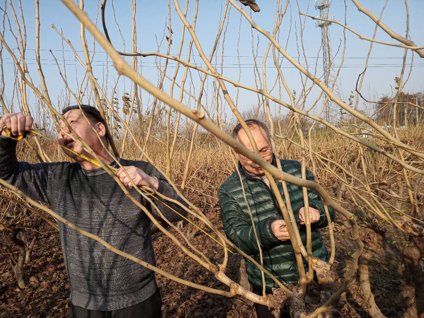 圖為秀洲區(qū)的蠶桑技術(shù)人員正在調(diào)查桑樹條長、芽數(shù)與桑條粗壯度等。