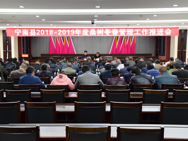 為動早抓好四川省寧南縣2018-2019年度桑樹冬春管護(hù)工作,12月25日,縣領(lǐng)導(dǎo)洪開明、肖賢發(fā)組織縣蠶桑產(chǎn)業(yè)發(fā)展領(lǐng)小組成員、25個鄉(xiāng)鎮(zhèn)黨委書記(鄉(xiāng)鎮(zhèn)長)、蠶輔員以及縣蠶業(yè)部門技術(shù)員召開2018-2019年度桑樹冬春管理現(xiàn)場會暨工作推進(jìn)會。