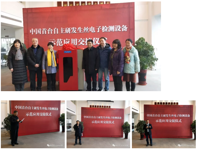 熱烈慶祝中國首臺(tái)自主研發(fā)生絲電子檢測設(shè)備示范應(yīng)用交接儀式在位于江蘇吳江市的華佳集團(tuán)內(nèi)成功舉行。這是中國絲綢行業(yè)“中國智造”水平的新提升。