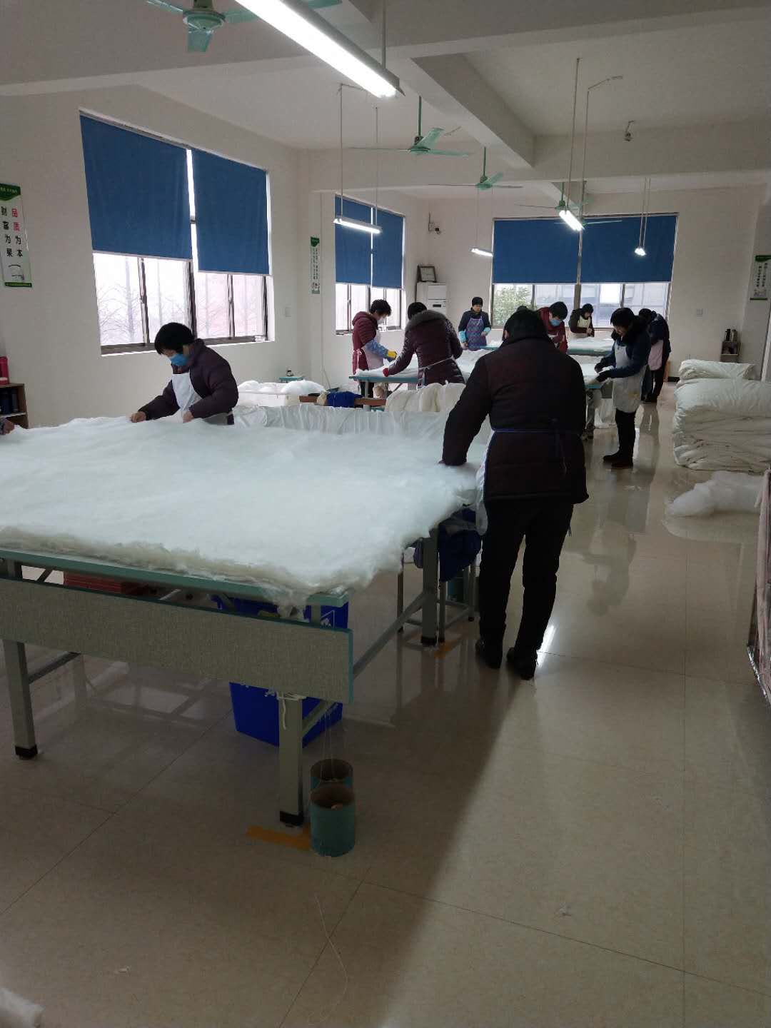 桐鄉(xiāng)的絲綿被企業(yè)開始陸續(xù)開工,大面積開工則在正月十五左右,今日,五世同堂真絲家紡公司開工忙。