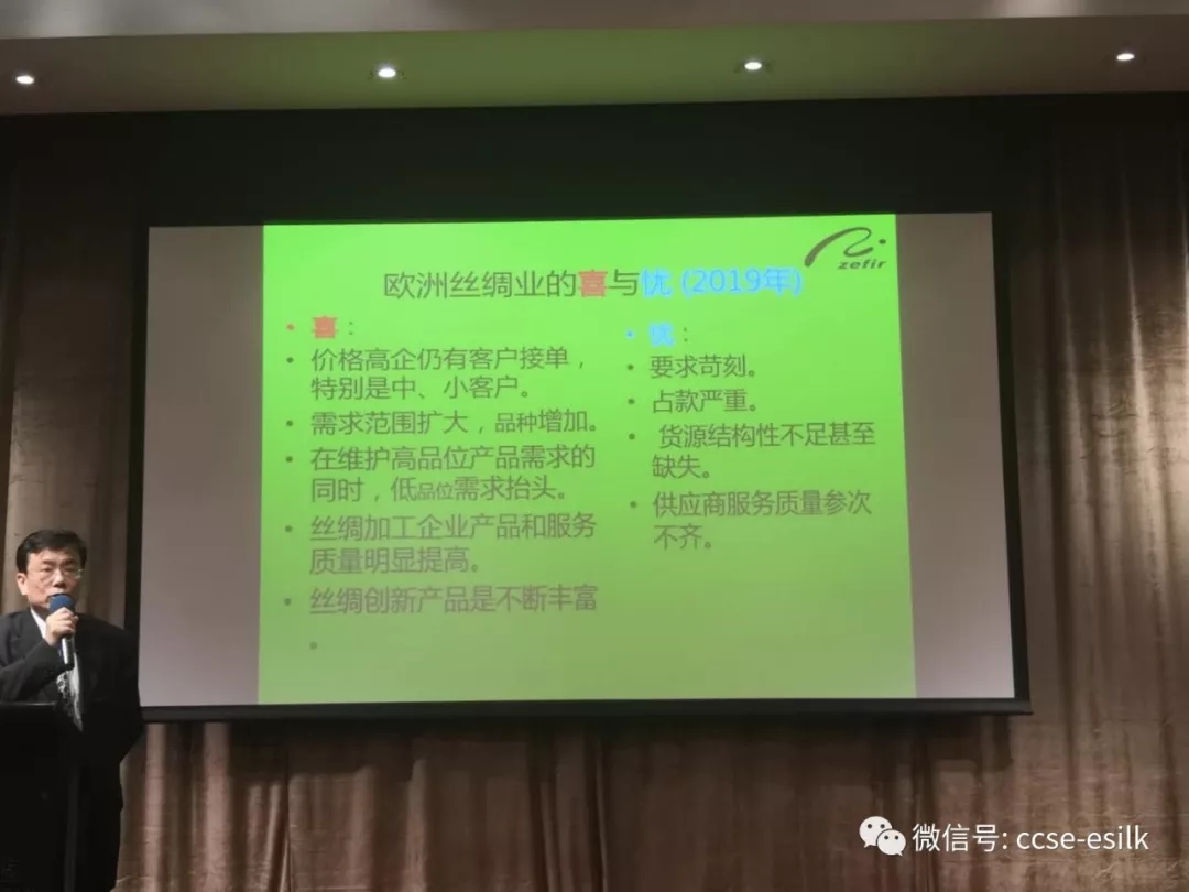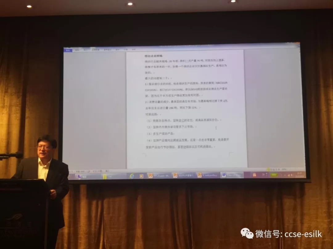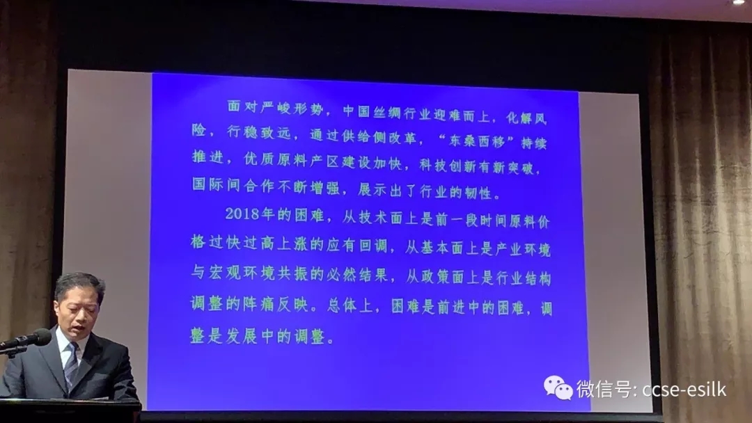 王會長說,雖然2018年絲價(jià)下跌明顯,中美貿(mào)易戰(zhàn)也帶來沖擊,但是2018年絲綢貿(mào)易整體平穩(wěn),2019年不確定因素依然很多。他介紹了到會的嘉賓,并宣讀了國家繭絲綢辦的賀信。今天的論壇主要目的在于讓企業(yè)家們暢所欲言,加大對今年貿(mào)易的把握。他感謝參會人士雖然面臨今年的種種困難,仍參加此次會議。