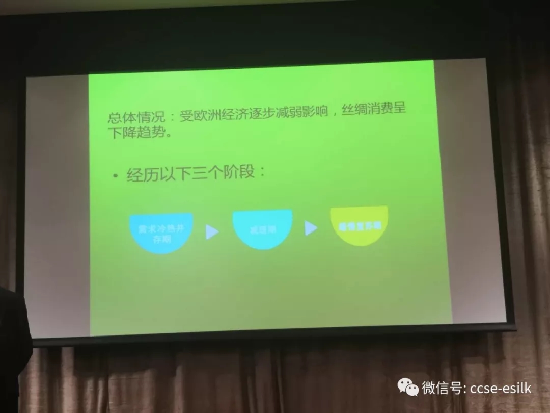 安德烈先生分享了對市場的看法。去年以來,行業(yè)發(fā)生了很多事情和變化。在上次的分享會上,他就說這個(gè)價(jià)格是歷史最高價(jià),之后我們都知道發(fā)生了什么,一年之后的今天又發(fā)生了怎樣的翻天覆地的變化呢?跌幅已經(jīng)超過25%,歐洲、印度等市場緩慢,事實(shí)就是,回到了2017年和2018年初的水平需要花費(fèi)很長的時(shí)間。絲綢不是必需品,現(xiàn)在是擼起袖子來重建的時(shí)候了。去年因?yàn)閮r(jià)格的高昂,只有奢侈品用得起,中低檔由于保證利潤而少用蠶絲或改用?,F(xiàn)在價(jià)格雖整體有所回落,但設(shè)計(jì)部門不是立即能看到的轉(zhuǎn)變,還需要時(shí)間等待。希望我們吸取教訓(xùn),不要重蹈覆轍。從業(yè)者要有長遠(yuǎn)的眼光來看待行業(yè)。