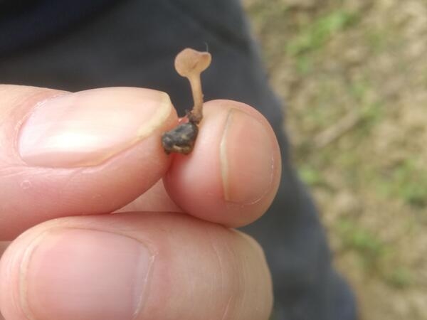長出地面的桑椹肥大性菌核病子實(shí)體