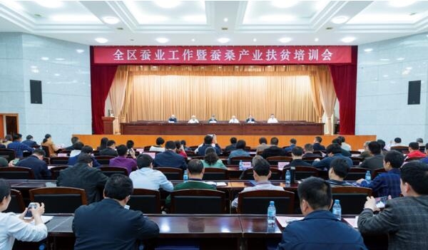 謝東副廳長對2018年全區(qū)蠶桑產(chǎn)業(yè)取得的成效給予充分肯定,對十佳桑園、優(yōu)秀蠶房、優(yōu)秀小蠶共育室、優(yōu)秀農(nóng)技推廣人員給予表揚。強調(diào)要明確目標,把蠶桑工作上升到一帶一路建設(shè)的高度上,抓好蠶桑新示范點建設(shè),把蠶桑工作與國家綠色發(fā)展、精準扶貧、環(huán)境治理相結(jié)合。謝東副廳長對推動蠶桑產(chǎn)業(yè)高質(zhì)量發(fā)展提出四點要求:一是要推動生產(chǎn)標準化,提升品牌,發(fā)展現(xiàn)代蠶業(yè);二是要降低成本,發(fā)展規(guī)模經(jīng)營,推動一二三產(chǎn)業(yè)融合發(fā)展;三是要推動優(yōu)質(zhì)繭生產(chǎn),信息化融合,對外開放;四是要推進貧困地區(qū)蠶桑產(chǎn)業(yè)發(fā)展。