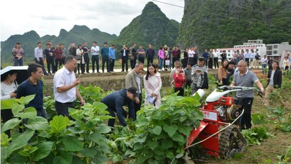 會議組織與會人員到廣西平果時宜農(nóng)業(yè)開發(fā)有限公司示范基地、坡造鎮(zhèn)種桑養(yǎng)蠶脫貧奔康產(chǎn)業(yè)園、廣西平果縣惠民蠶業(yè)科技有限責任公司示范基地進行條桑機收獲示范、省力化機械展示等扶貧現(xiàn)場培訓。