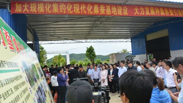 在坡造鎮(zhèn)種桑養(yǎng)蠶脫貧奔康產(chǎn)業(yè)園學習