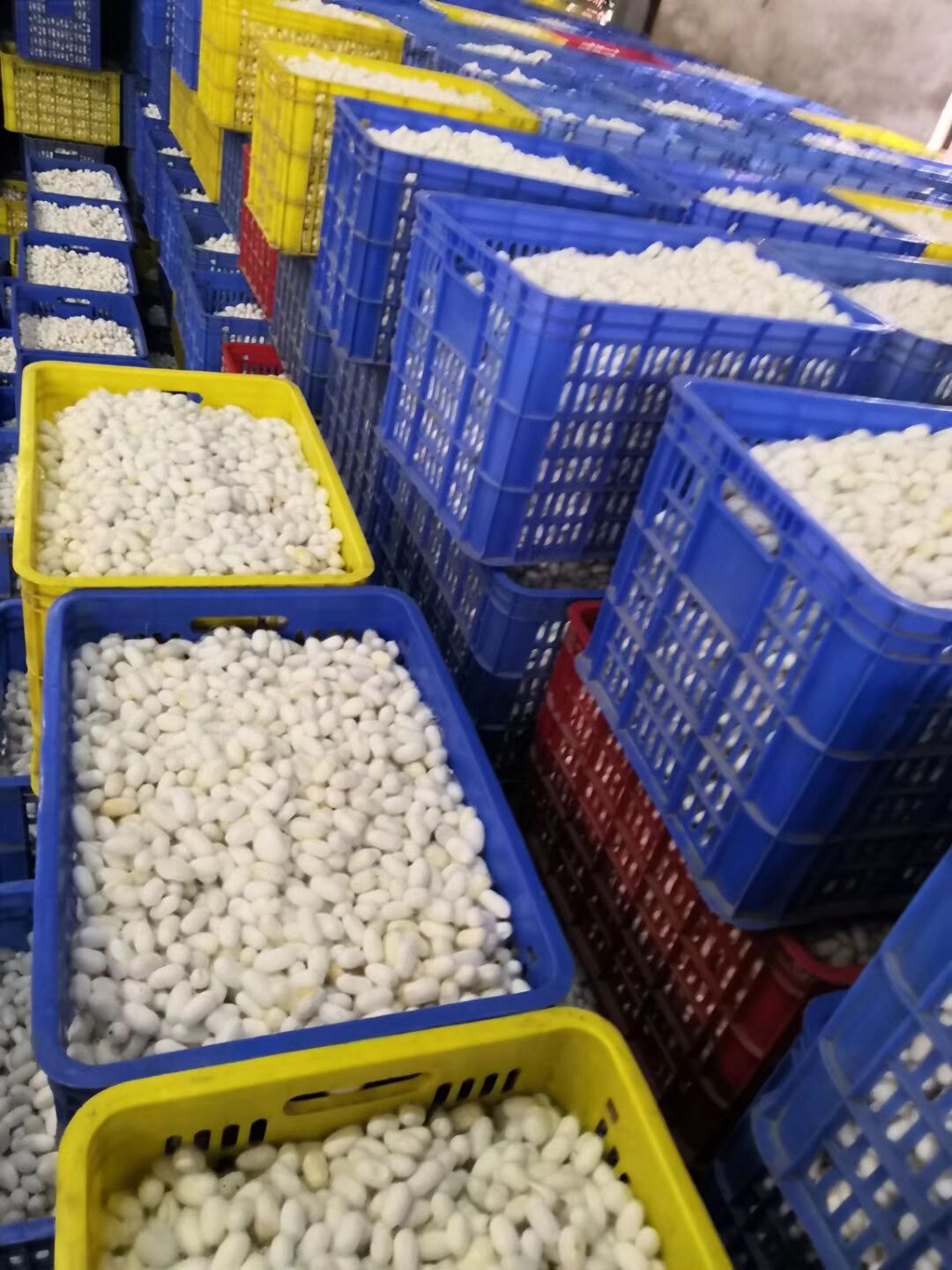 在廣西南寧上林縣木山鄉(xiāng),昨日下午首批鮮繭上市,鮮繭收購價(jià)格在每公斤33-34元左右。