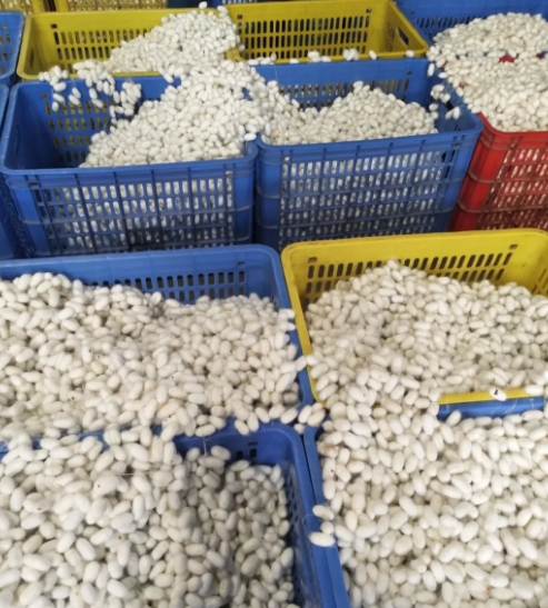 今日廣西河池宜州等地有雨,春繭收購價格和昨日變化不大,一般在每公斤34-36元左右,質(zhì)量差點(diǎn)的宜州本地繭在每公斤24元左右。大部分的首批鮮繭預(yù)計將在5月3日到5日左右上市。此外源源不斷的外地繭也從各地調(diào)往宜州繅絲集中區(qū),下圖為從外地調(diào)入宜州的繭子,價格在32-34元之間。