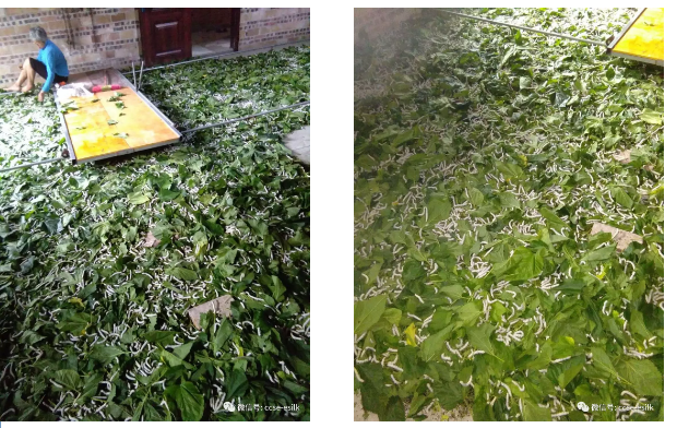 下圖為宜州區(qū)拉浪鄉(xiāng)芝廷村某蠶農(nóng)養(yǎng)的蠶寶寶,五齡第五天,一位老人養(yǎng)了半張。右圖為剛剛喂了桑葉后拍的,蠶農(nóng)描述食桑好,蠶訊較好。