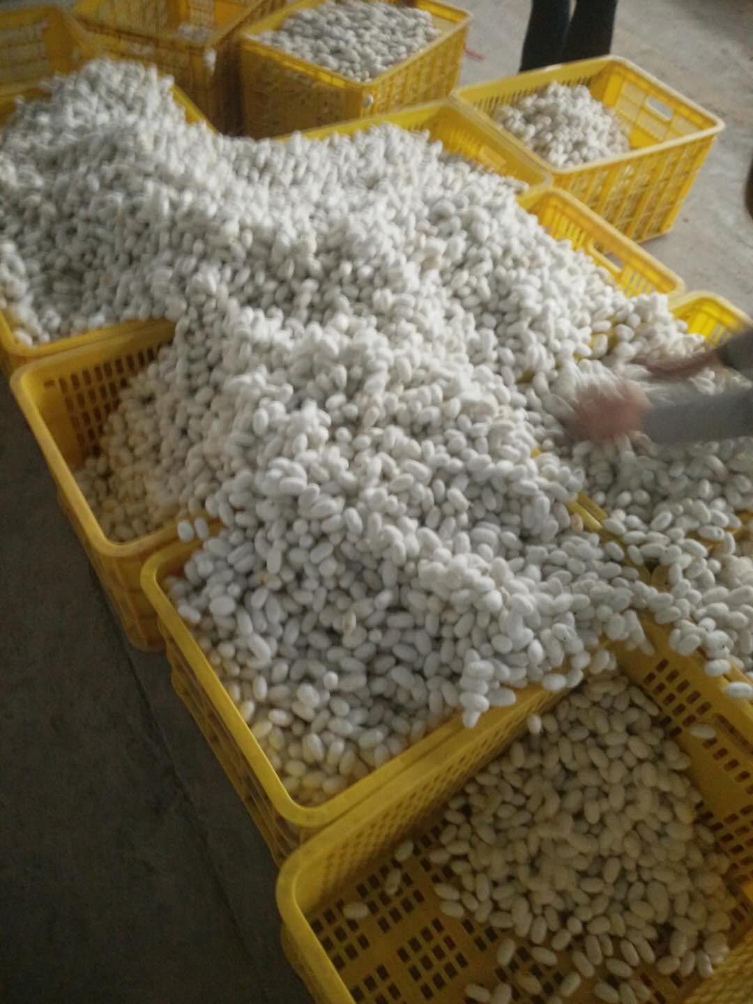 在附近的來賓市忻城縣,今天鮮繭繼續(xù)上市,繭質(zhì)一般,收購價格在每公斤32元左右。