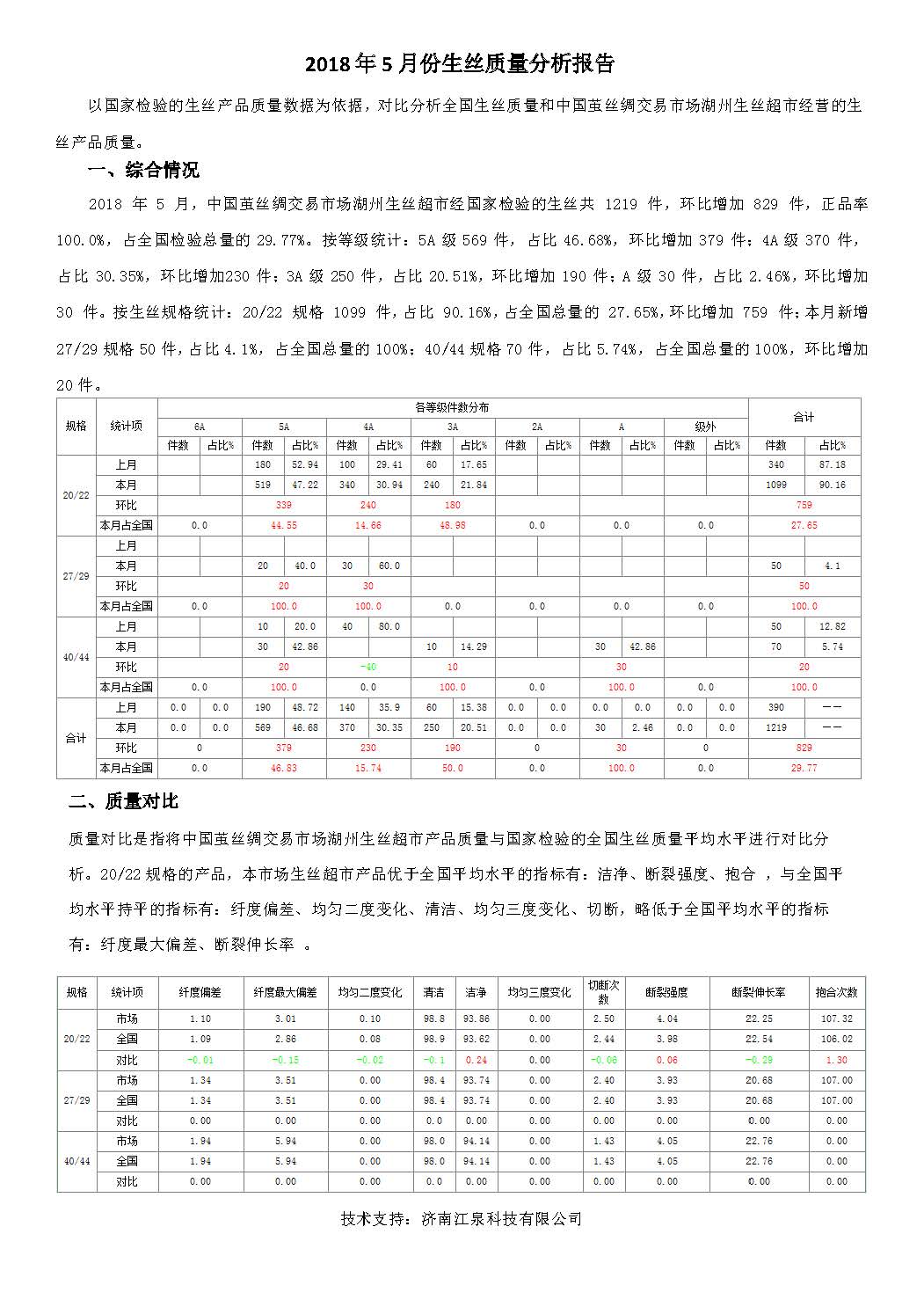 2018 年5 月份生絲質(zhì)量分析報告