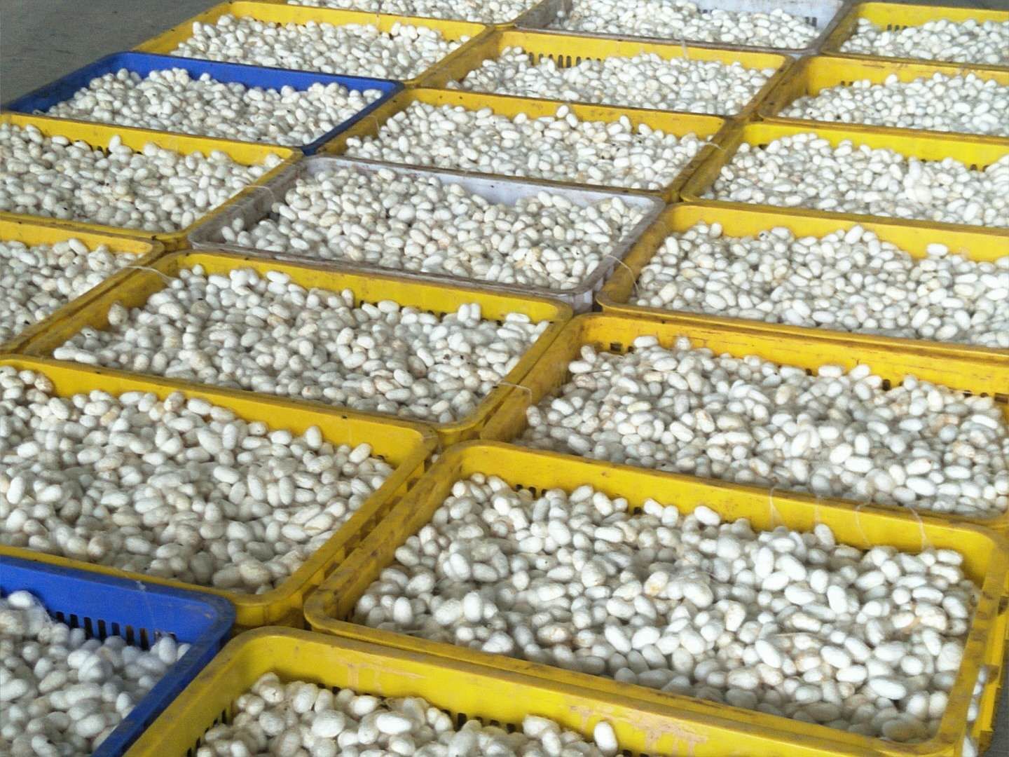 廣西融安縣,第三批繭陸續(xù)上市,某收購點今日收購價在每公斤33-34元左右。