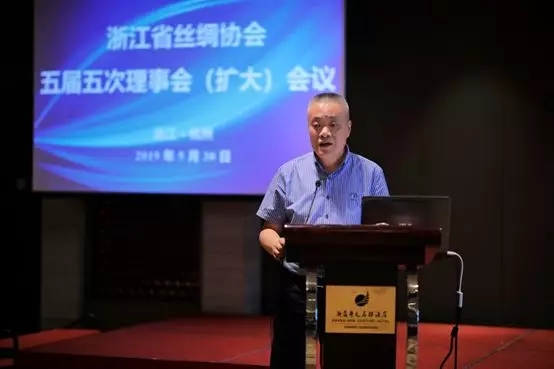 2019年5月30日,浙江省絲綢協(xié)會在杭召開了五屆五次理事會(擴(kuò)大)會議。省絲綢協(xié)會會長吳金根、副會長陳文興、王海平及其他副會長單位代表、各理事、會員單位代表近百人參加了會議,省經(jīng)信廳消費(fèi)品處、省繭絲辦施慧萍調(diào)研員出席會議并作了重要講話。會議由省絲綢協(xié)會副會長兼秘書長王海平主持。