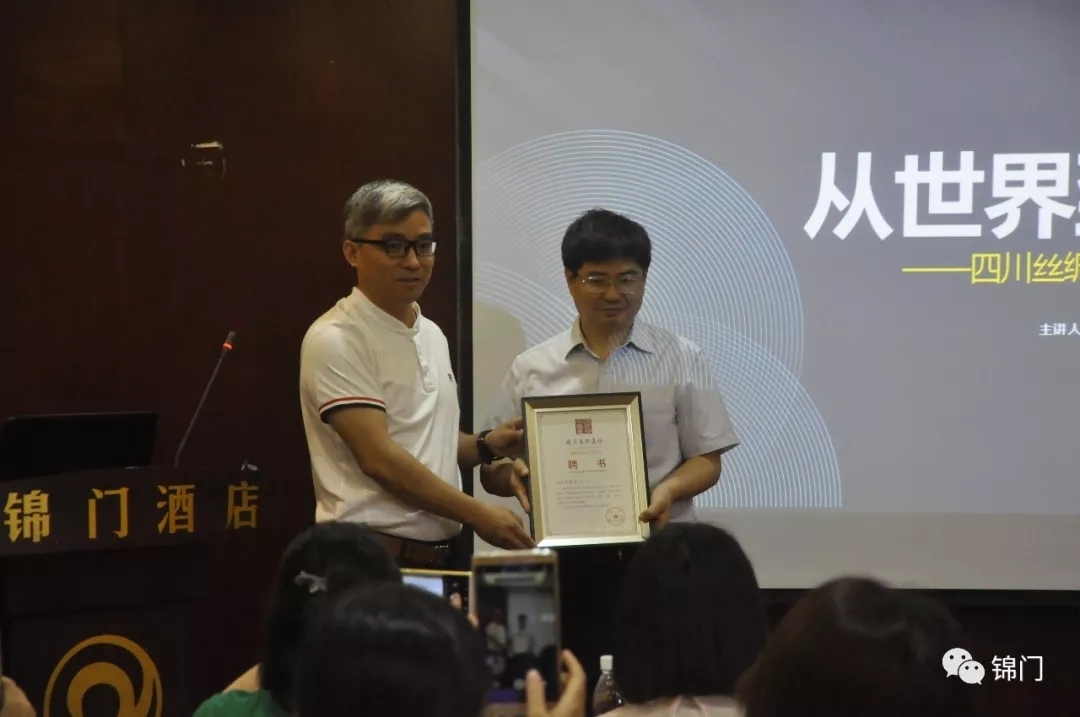 6月11日上午,在錦門(mén)酒店的會(huì)議室中,四川朗瑞絲綢有限公司董事長(zhǎng)吳金良為國(guó)家藝術(shù)基金2019年度藝術(shù)人才培養(yǎng)資助項(xiàng)目《錦繡傳承與創(chuàng)新藝術(shù)設(shè)計(jì)人才培養(yǎng)》的學(xué)員們,進(jìn)行了題為《從世界到中國(guó)——四川絲綢產(chǎn)業(yè)的多維度思考》的內(nèi)容分享。