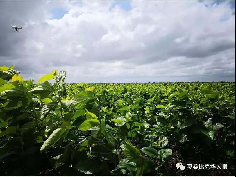 圖題:無人機在拍攝莫中盛達農(nóng)業(yè)發(fā)展有限公司位于加扎省賽賽地區(qū)萬寶農(nóng)業(yè)產(chǎn)業(yè)園園區(qū)內(nèi)的蠶桑種植區(qū)。
