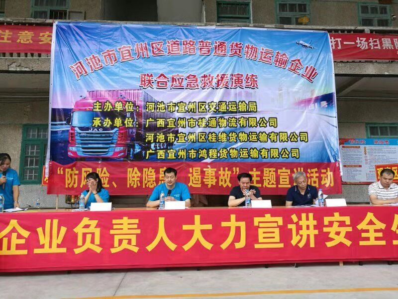 為進(jìn)一步提高物流企業(yè)應(yīng)急救援和部門(mén)聯(lián)動(dòng)、協(xié)同配合能力,完善應(yīng)急處置預(yù)案,2019年6月24日,由廣西河池市宜州區(qū)交通運(yùn)輸局主辦,廣西宜州桂通物流有限公司等公司承辦,消防安全等聯(lián)合應(yīng)急救援演練活動(dòng)在宜州桂通物流公司內(nèi)圓滿(mǎn)完成。此舉對(duì)提高繭絲綢物流企業(yè)的應(yīng)急能力和服務(wù)水平,具有重大意義。