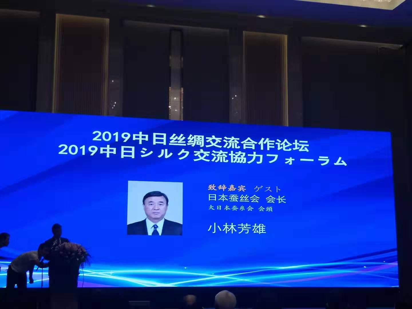 小林芳雄會長介紹了日本蠶絲業(yè)近年來的發(fā)展和大日本蠶絲會的工作。他表示必須抓住絲綢的需求來進行生產(chǎn)。期待著與中國的合作與發(fā)展。