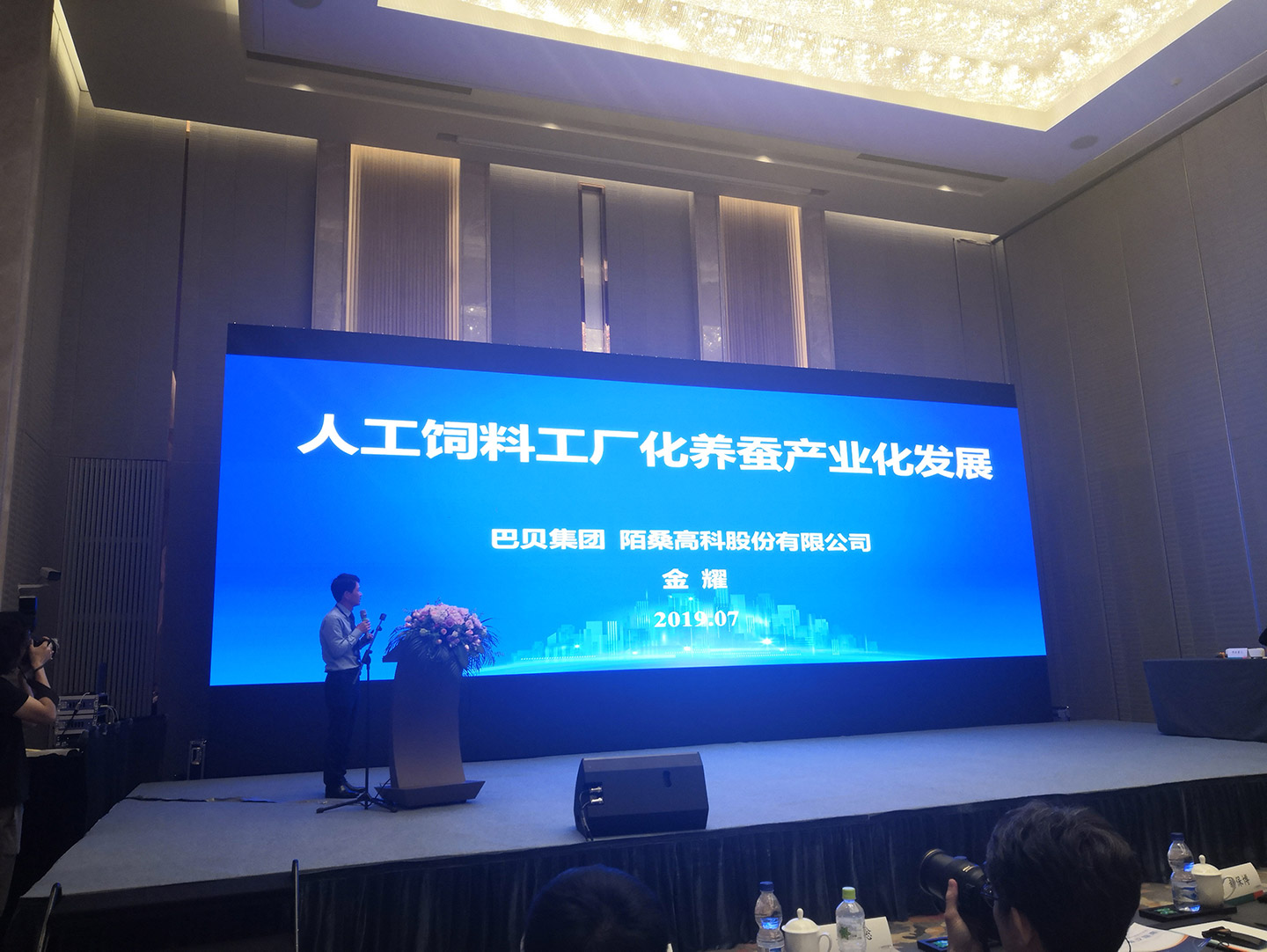 金耀董事長介紹了人工飼料工廠化養(yǎng)蠶產(chǎn)業(yè)化發(fā)展。