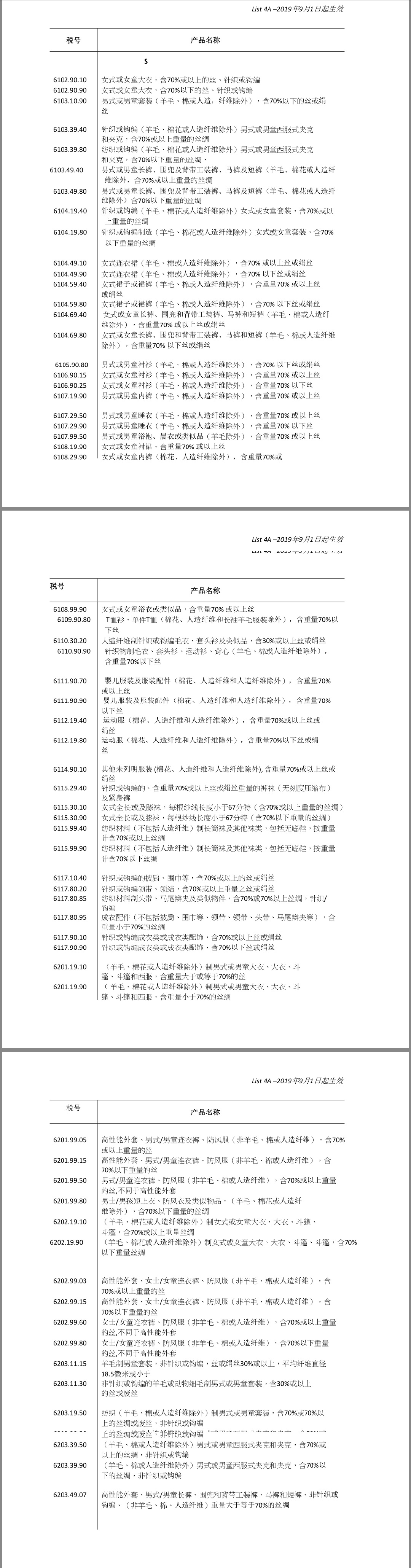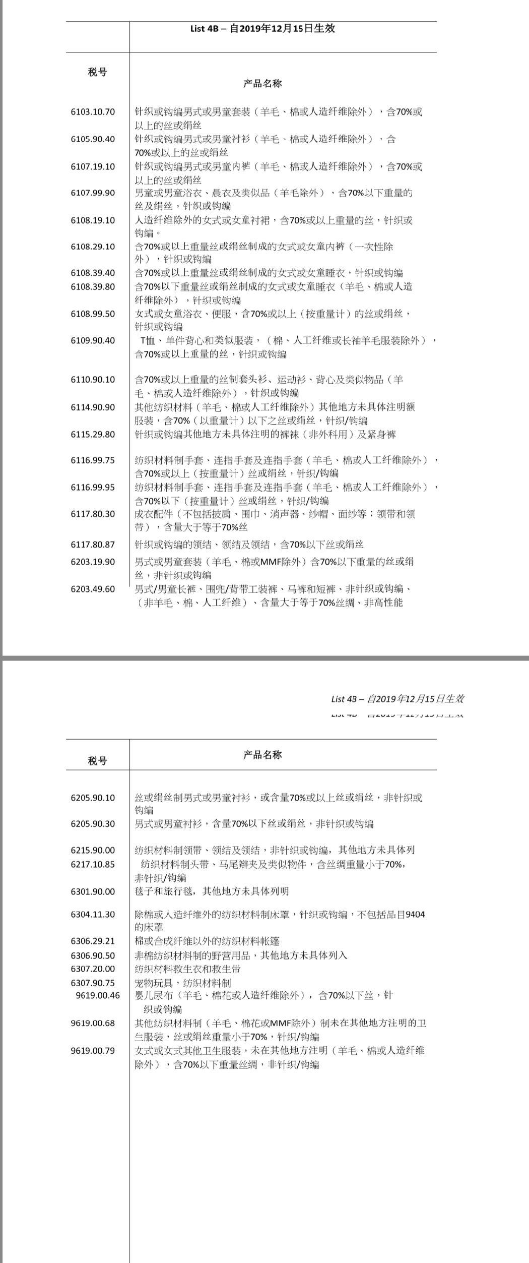 由于美方將紡織服裝產(chǎn)品打散分別放入了兩個清單,我們盡可能以最快速度將涉及或可能涉及絲綢產(chǎn)品的清單做了整理,盡量保證其完整性和準(zhǔn)確性。