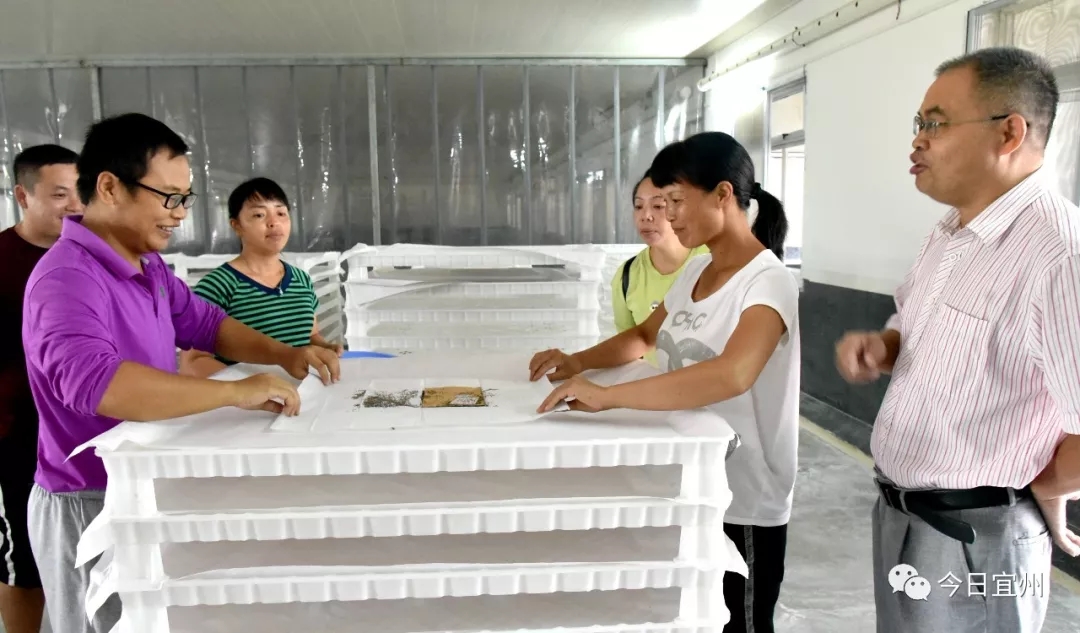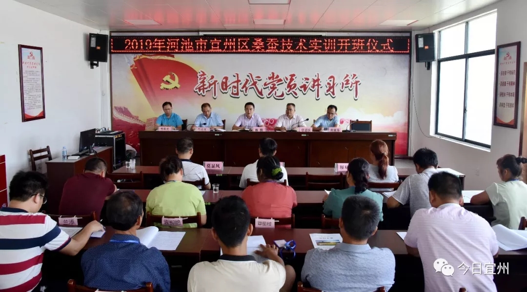 8月12日,廣西河池宜州區(qū)在德勝鎮(zhèn)劉三姐高效生態(tài)桑蠶產(chǎn)業(yè)(核心)示范區(qū)舉辦2019年桑蠶實(shí)訓(xùn)技術(shù)培訓(xùn)班。來自北牙瑤族鄉(xiāng)、龍頭鄉(xiāng)、安馬鄉(xiāng)等鄉(xiāng)鎮(zhèn)的村干、蠶農(nóng)代表等參加本次培訓(xùn)班第一期培訓(xùn)。
