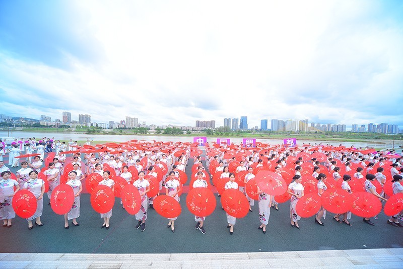 9月16日上午10點(diǎn),以“弘揚(yáng)絲綢文化,展現(xiàn)時(shí)尚服飾品牌”為主題的四川南充2019中國(guó)西部絲綢博覽會(huì)千人旗袍秀在四川省南充市“印象嘉陵江”繽紛水岸濕地公園音樂(lè)廣場(chǎng)隆重舉行。