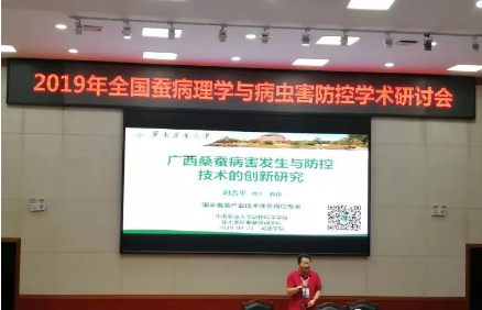 華南農業(yè)大學的劉吉平專家作《廣西桑蠶病害發(fā)生與防控技術的創(chuàng)新研究》