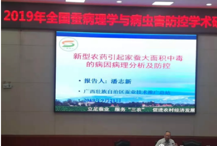 廣西壯族自治區(qū)蠶業(yè)技術推廣總站的潘志新專家作《新型農藥引起家蠶大面積中毒的病因病理分析及防控》