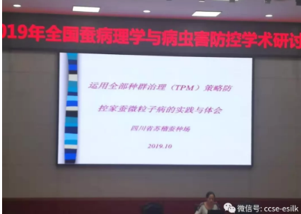 四川省蘇稽蠶種場的李成階專家作《運用全部種群治理(TPM)策略防控家蠶微粒子病實踐與體會》