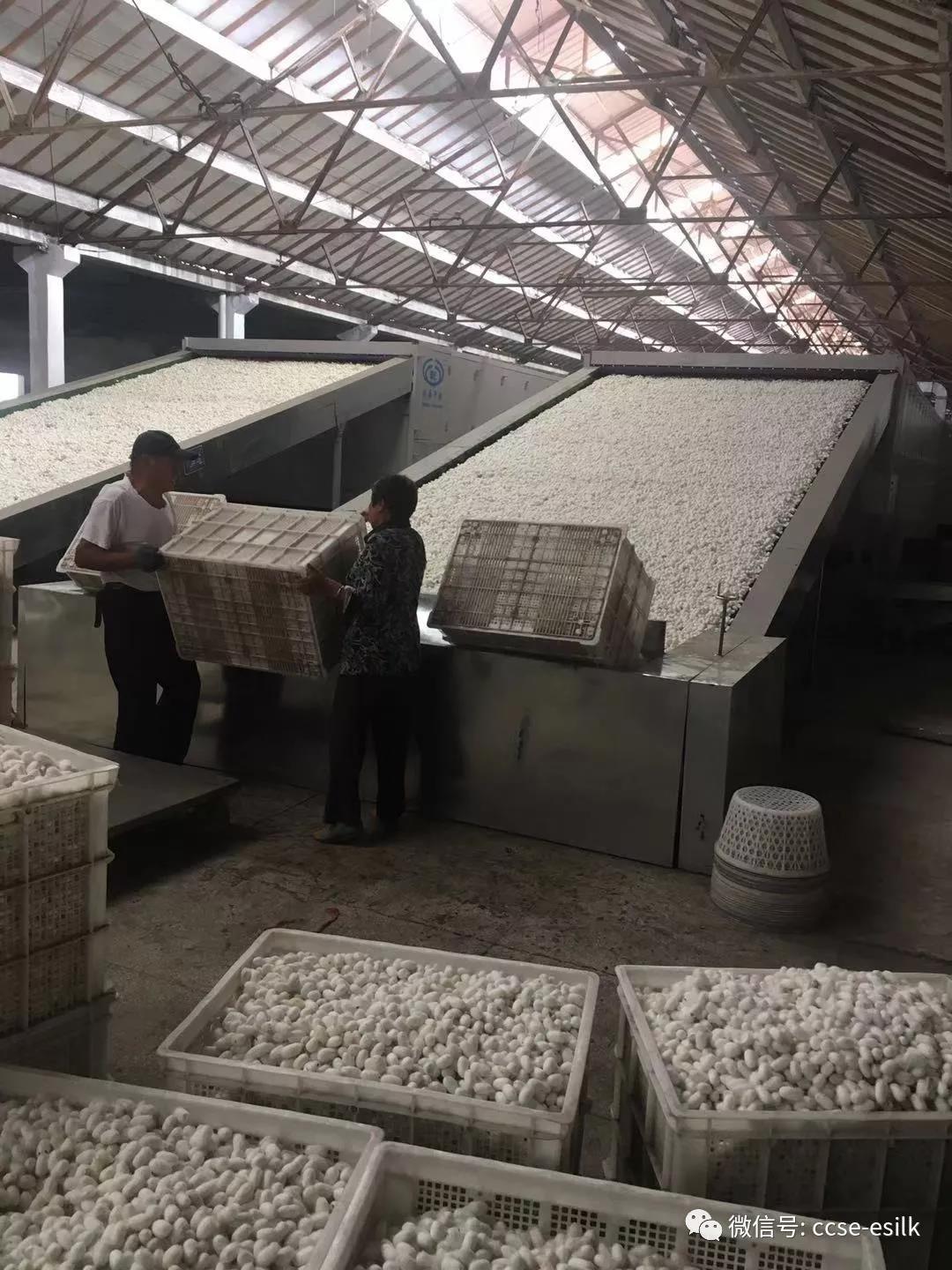 繭站內(nèi)前場(chǎng)輸送機(jī)不停地將蠶農(nóng)蠶繭運(yùn)到指定窗口進(jìn)行檢驗(yàn),秤重,定價(jià)。監(jiān)控器也在記錄著工作人員忙碌的身影。遠(yuǎn)處的大型先進(jìn)烘繭機(jī)及時(shí)處理著剛收購的能繅6A級(jí)生絲的蠶繭。16個(gè)大型繭站在緊張有序中運(yùn)行著,預(yù)計(jì)經(jīng)過10多個(gè)小時(shí)的緊張奮戰(zhàn),能夠圓滿完成公司下達(dá)的收購任務(wù)。