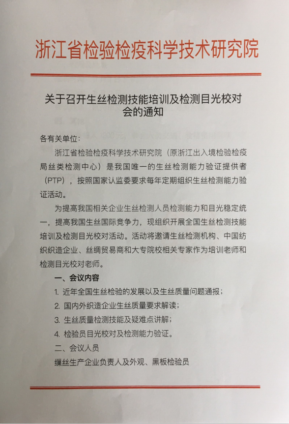 關(guān)于召開(kāi)生絲檢測(cè)技能培訓(xùn)及檢測(cè)目光校對(duì)會(huì)的通知